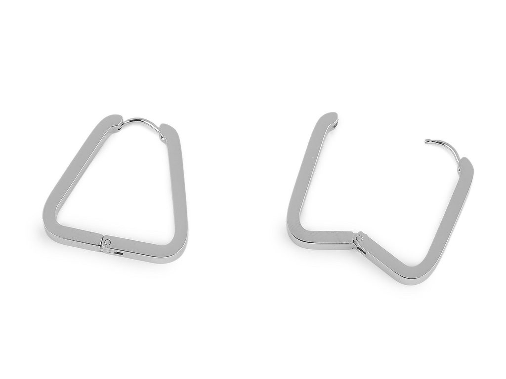 Elegantní náušnice z kvalitní nerezové oceli mají moderní trojúhelníkový tvar. Jsou hladké, mají vysoký lesk. Hodí se k jakémukoliv outfitu, perfektně doplní i byznys styl oblékání, oblíbíte si je na každodenní nošení.Zapínají se zacvaknutím.