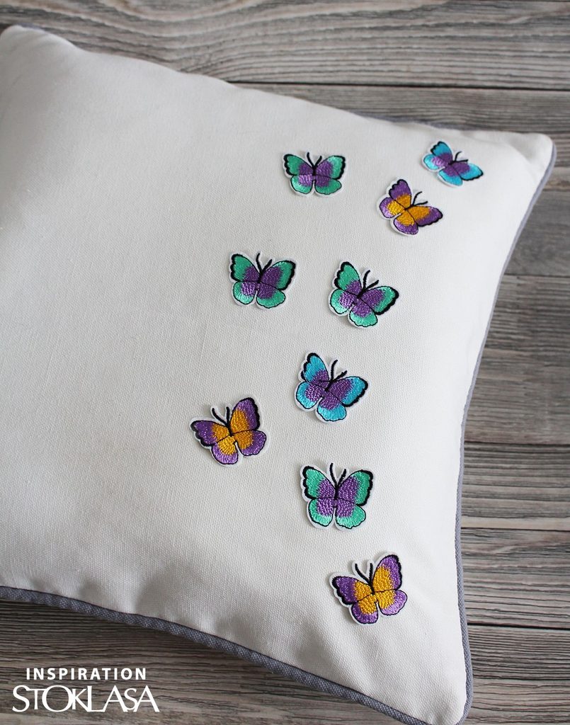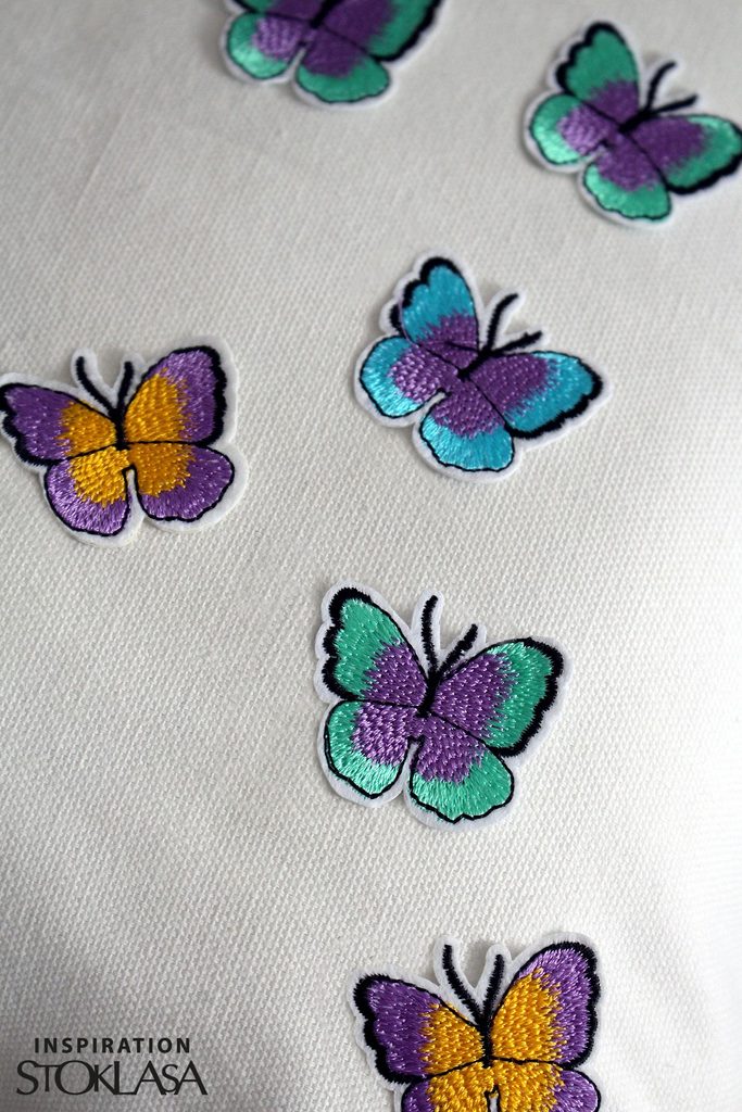 Nažehlovačka motýla má kvalitní provedení. Je celoplošně vyšívaná a jemně se leskne. Vynikne na oblečení, módních doplňcích i na bytových dekoracích.