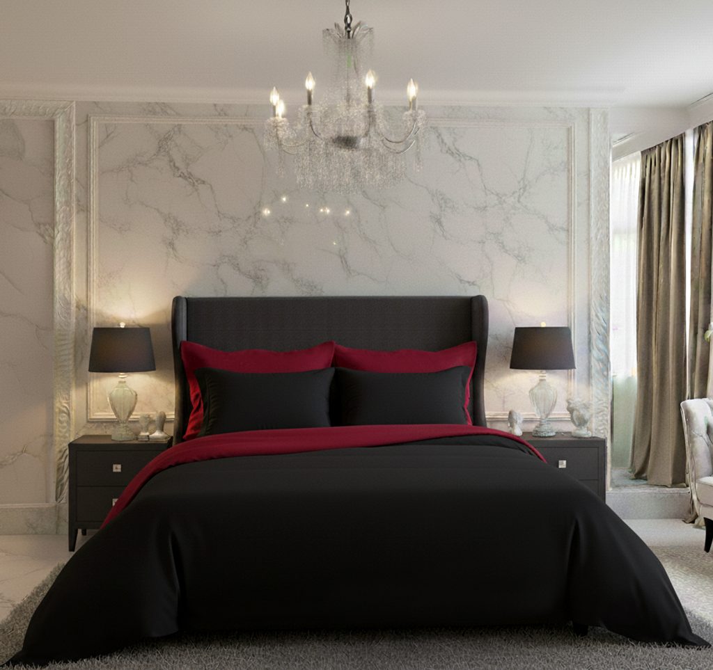 Saténové povlečení LUXURY COLLECTION vínové/černé