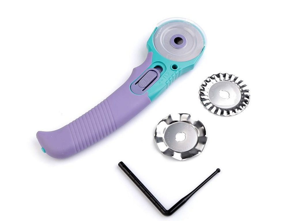 Rotační řezací kolečko Multi Prym je vhodné na řezání vzorů z textilu, kůže a papíru.Má další 2 výměnné čepele - entlovací a vlnkovací.