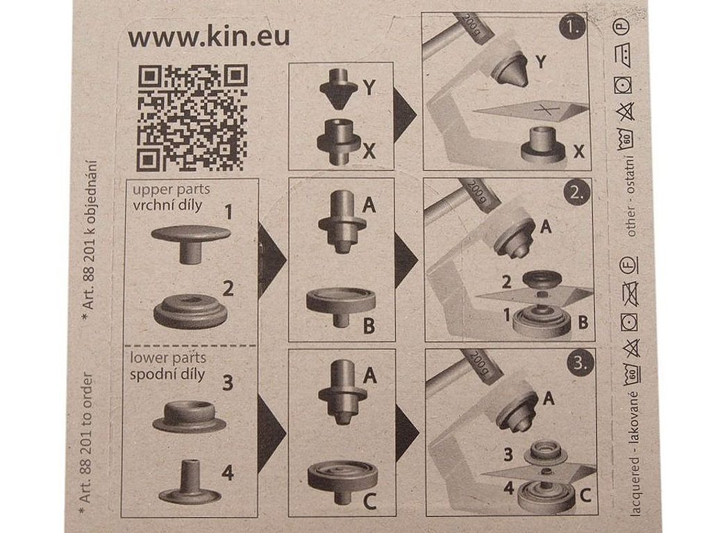 Stiskací knoflíky využijete ke spojování silnějších látek. Nýtování se provádí plastovým mini lisem, který je součástí balení.