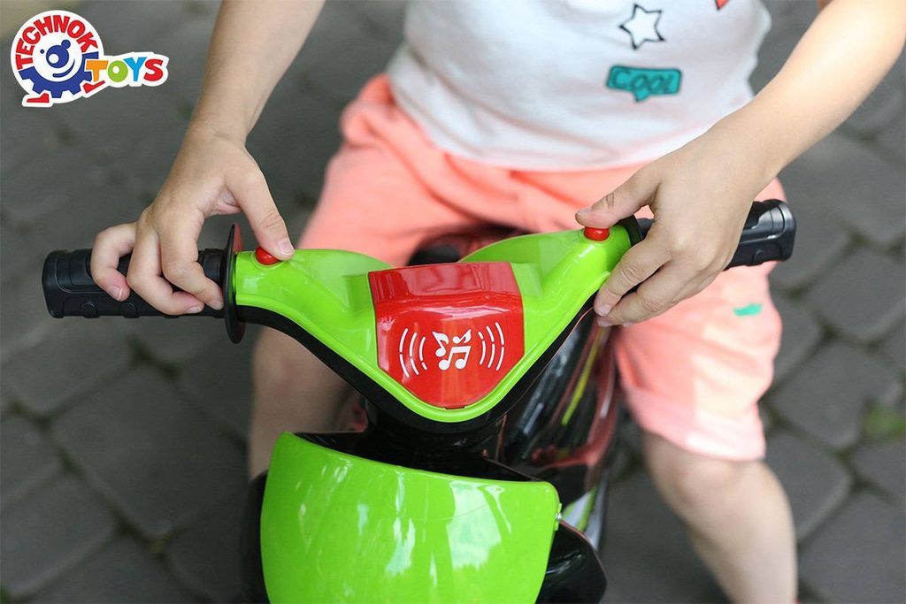 dovedností. Motorka Enduro má v zadní části dvě kola, čímž se stává stabilnější a jízda na ní je bezpečnější. Sedadlo je pohodlné a ergonomicky tvarované. Směr motorky dítě udává prostřednictvím přední