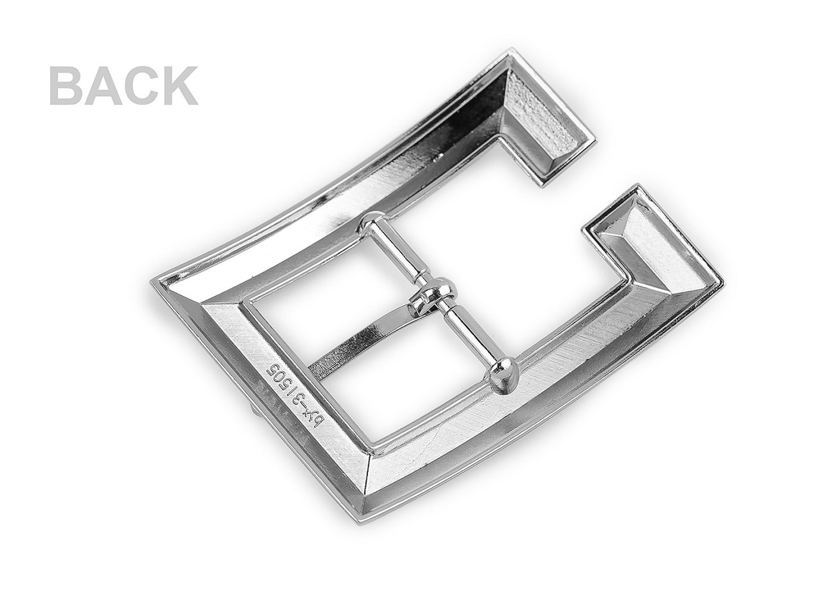 Kovovou sponu využijete na výrobu opasků nebo jako zapínání na tašky a kabelky. Má obdélníkový tvar a zdobný prvek v podobě neuzavřené strany. Povrch je lesklý, díky precizně zpracovaným detailům působí přezka velmi esteticky, může se stát výrazným prvkem vašich módních doplňků.Spona je vyrobena z nemagnetického kovu, magnetická je pohyblivá tyčinka a část, o kterou se tyčinka opírá.