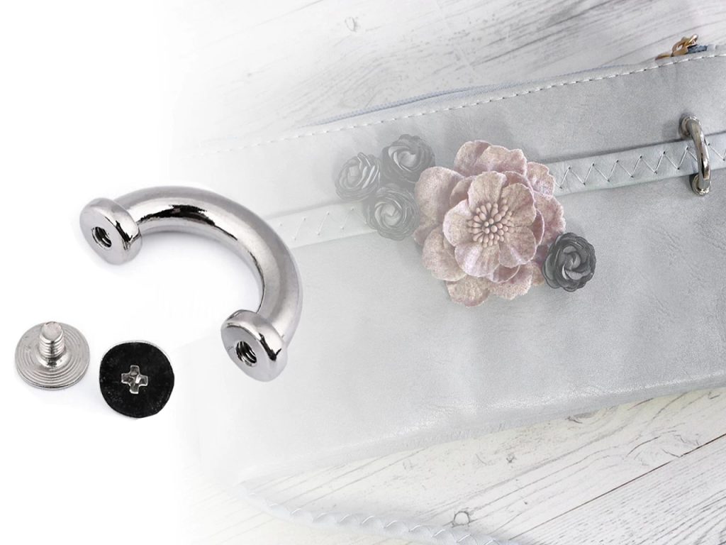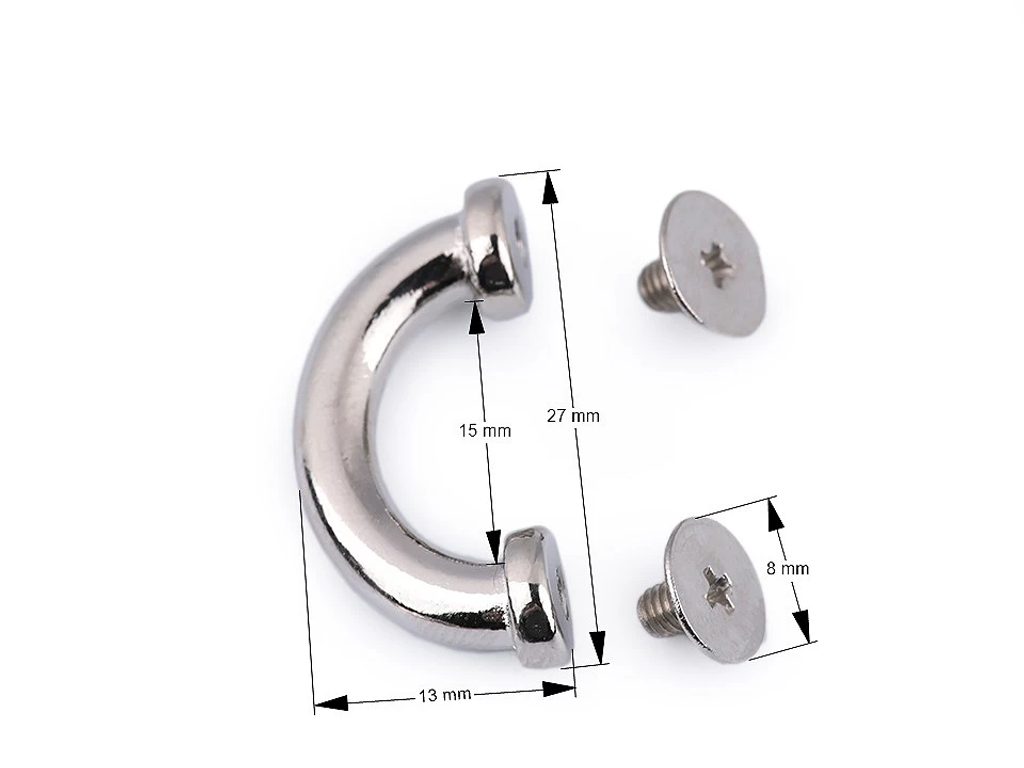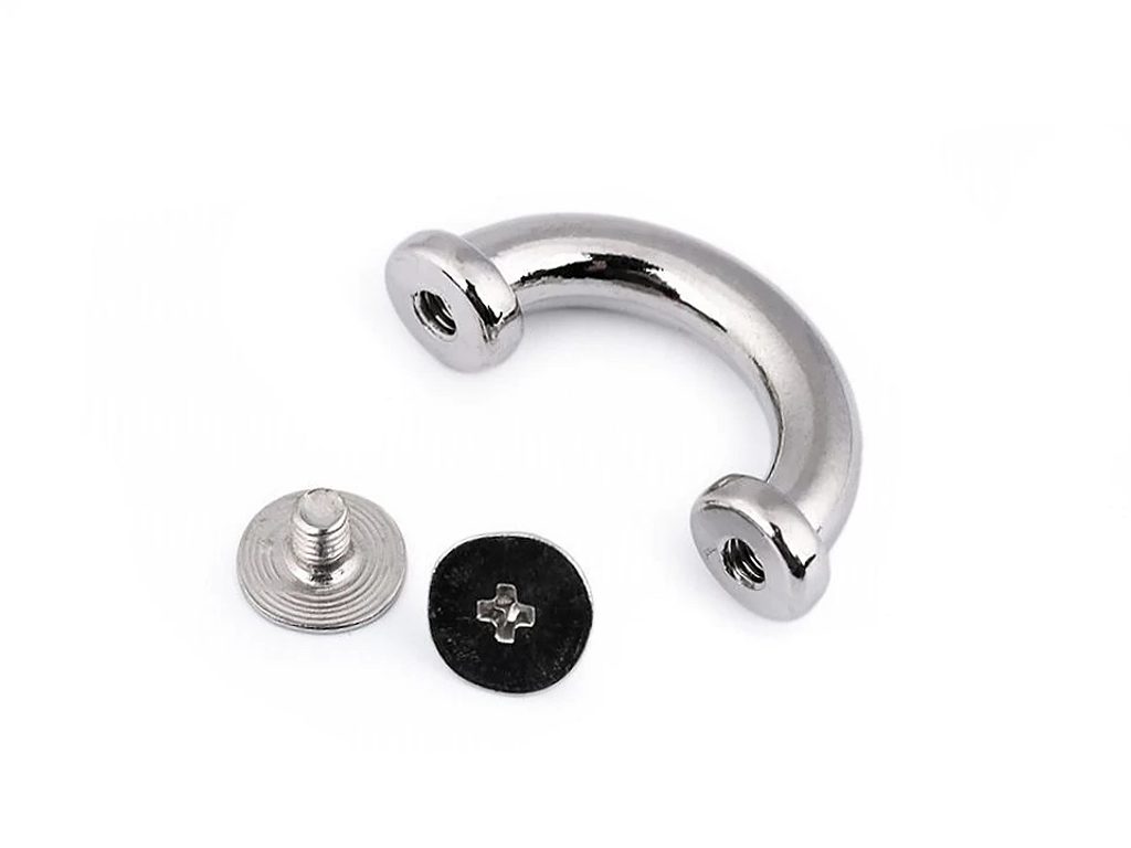Kovový průvlek ozdobí kabelky, tašky, batohy či opasky (z koženky, eko kůže, kůže a z hrubších materiálů - tloušťka cca 1-2 mm). Připevňuje se pomocí dvou šroubků.