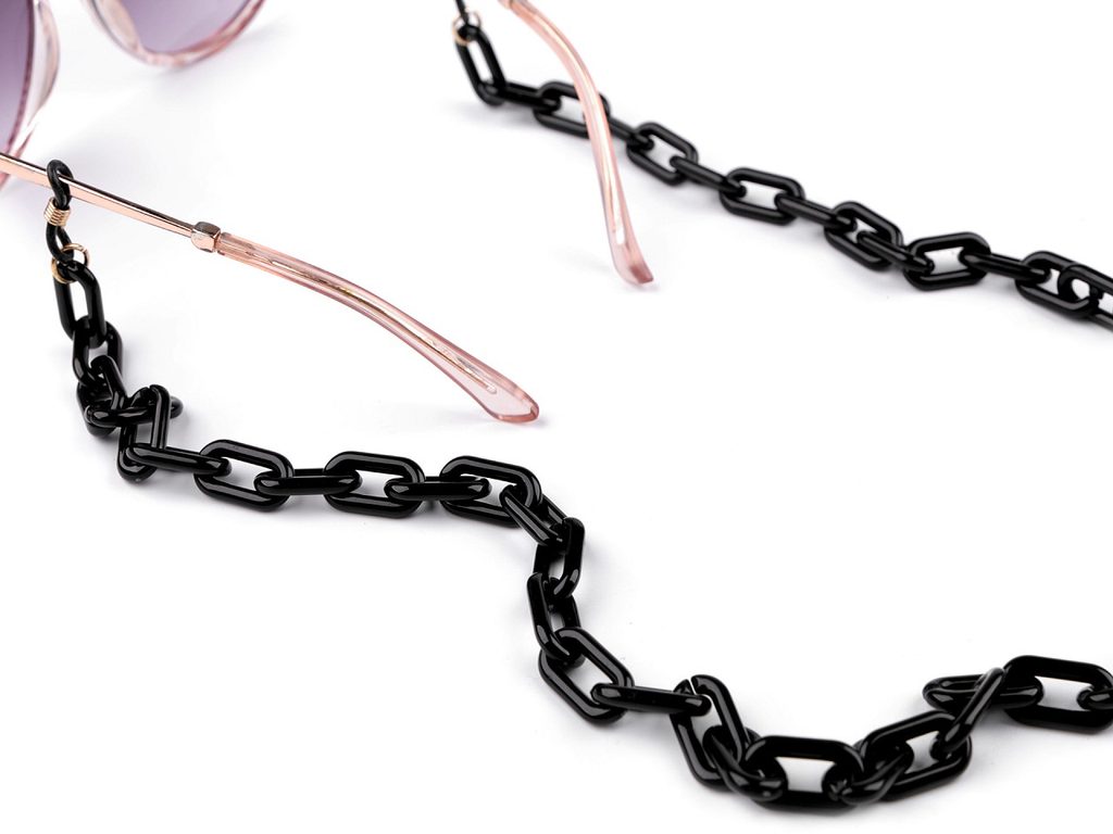 Řetízek na brýle je praktickým pomocníkem pro všechny, kteří si nezvykli nosit brýle na hlavě, přitom ale potřebují mít brýle neustále u sebe. Na řetízku můžete brýle nosit zavěšené kolem krku. Má výrazný design, je z oválných plastových oček. Dají se v případě potřeby rozpojit, řetízek si můžete zkrátit na potřebnou délku. Na koncích má silikonové gumičky, které se navlečou na nožičky brýlí.- Délka:: 70 cm