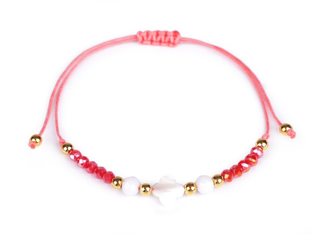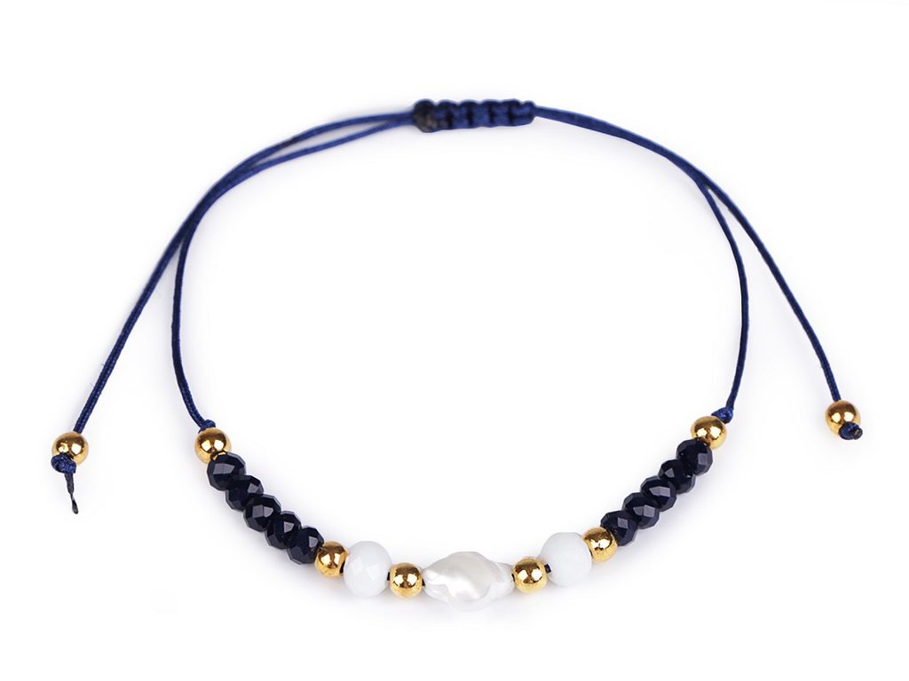 Shamballa náramky s korálkem z přírodní perleti jsou úžasným doplňkem letního outfitu. Hodí se jak k šatům, tak k halenkám, tričkům i plavkám. Perleť doplňují skleněné broušené a kovové korálky. Některé náramky mají AB efekt, jenž způsobuje zajímavé světelné odlesky. Zapínání je posuvné, oba konce náramku procházejí středovým uzlem, který umožňuje utažení šňůrek. Náramek má univerzální velikost.[Náramky v mixu se prodávají jako sada 12 ks] na papírové kartě k zavěšení.
