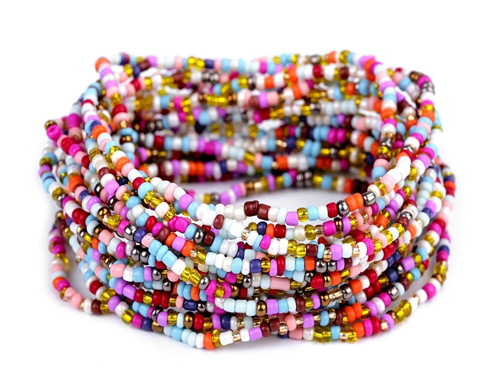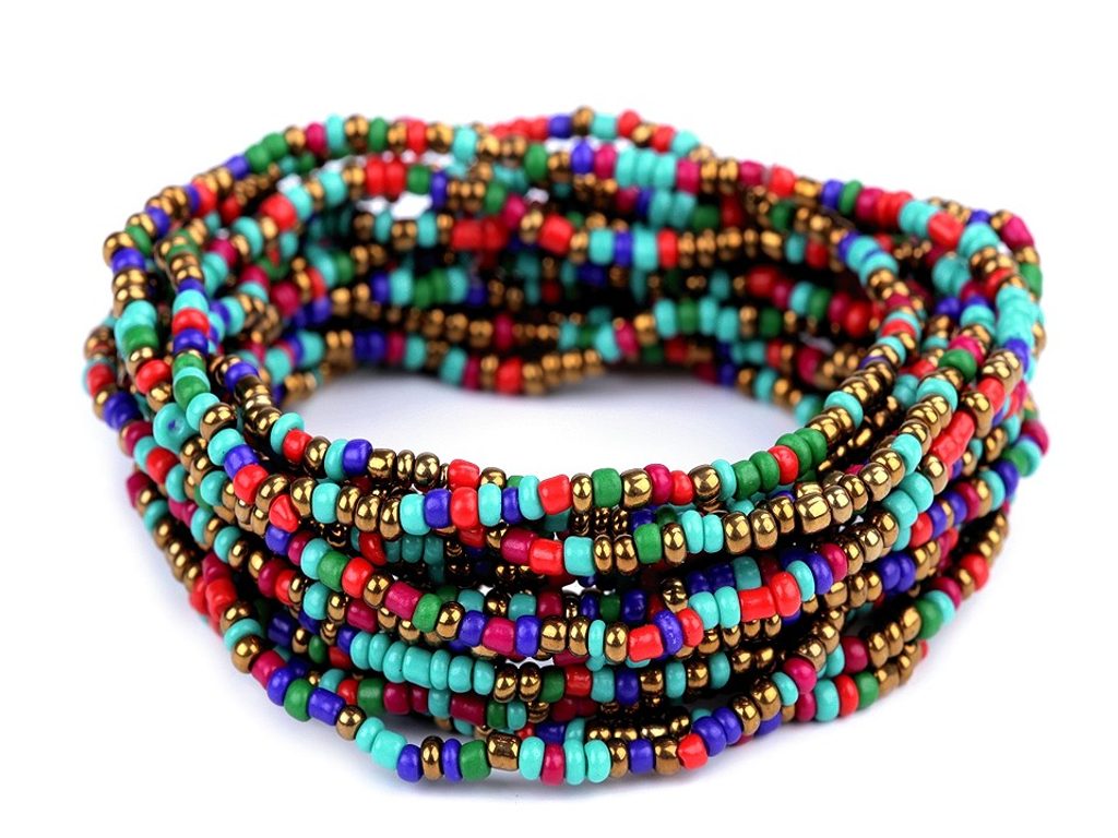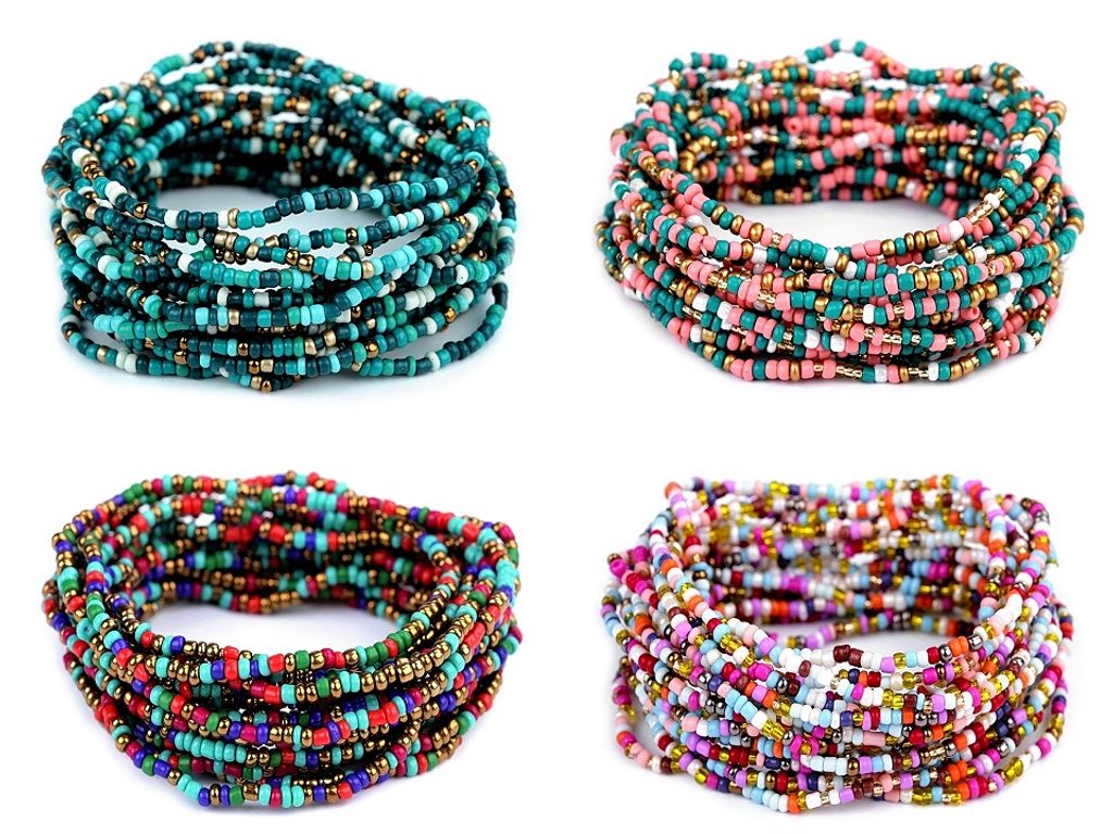 Sadu pružných rokajlových náramků můžete nosit celou najednou nebo můžete náramky rozdělit a použít je samostatně. Díky pružence se dobře navlékají na ruku.