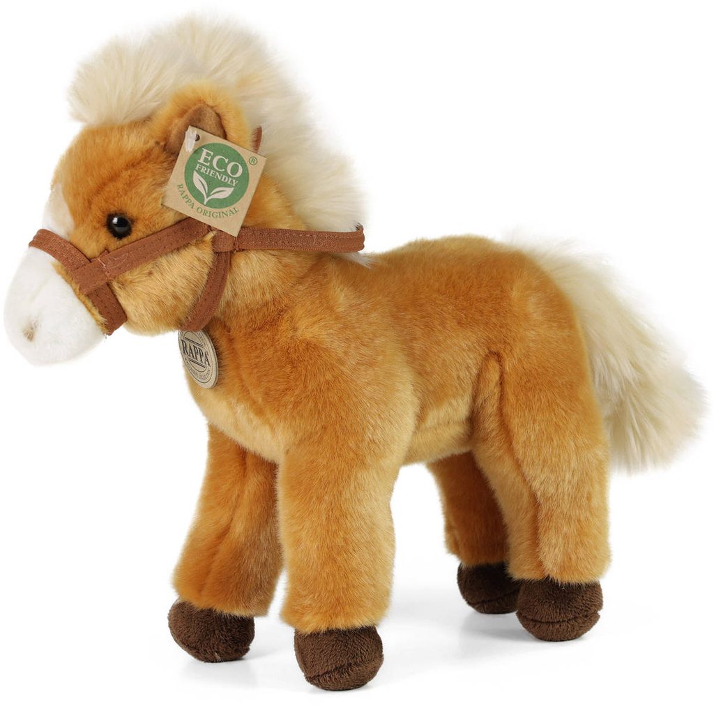 Stojící světle hnědý plyšový koník s otěžemi, zvířátko z kvalitní plyše, koníček pro všechny milovníky plyšových zvířátek.Tato hračka spadá do exkluzivní kolekce plyšových hraček. Od opičáka, přes papouška až po klasické pejsky a naježené kočky … produkty této kolekce jsou vyrobeny z velmi kvalitní plyše.