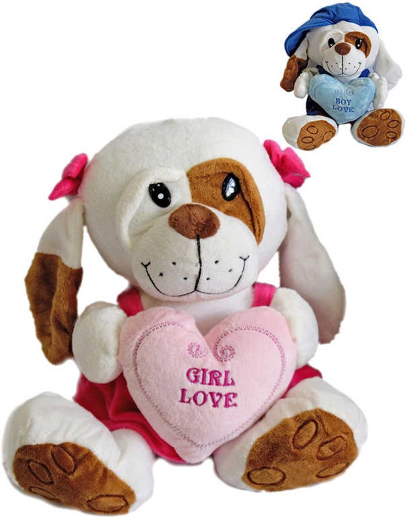 PLYŠ Pejsek v oblečku Love 25cm se srdíčkem 2 druhy