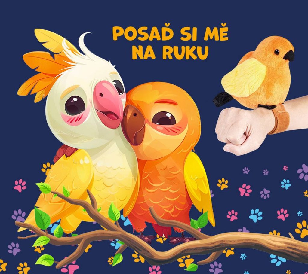 ***Vzhled ptáka je realistický, dvě tlačítka , jedním tlačítkem papoušek zpívá a druhým bočním tlačítkem s funkcí učení nahrávání (opakované mluvení); Součástí je náramek, díky kterému bude dítěti sedět na ruce.