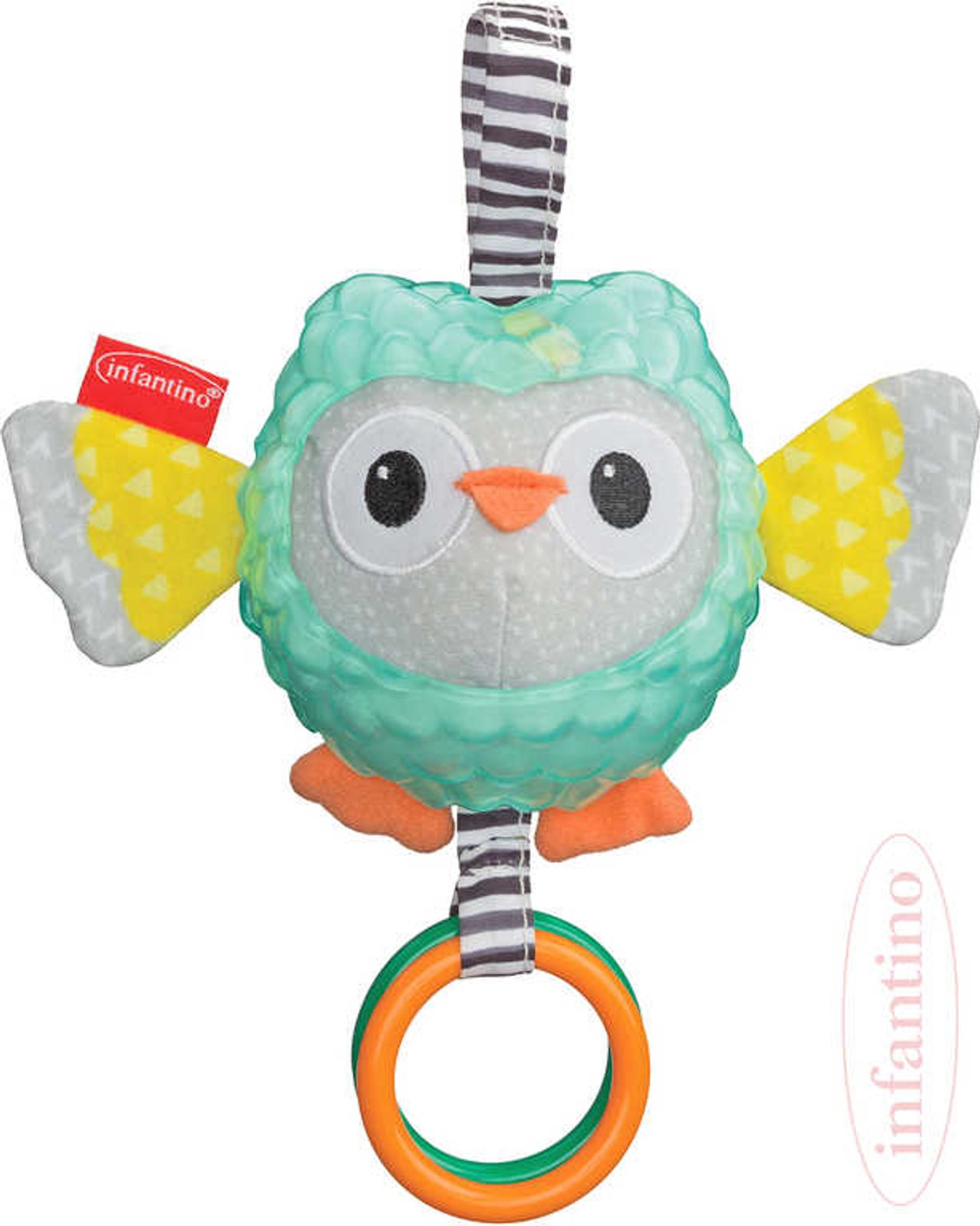 Hračka v podobě sovy nabízí různorodé textury ke zkoumání rukama i ústy. Pomáhá rozvíjet jemnou motoriku i jednotlivé smysly dítěte. S pomocí poutka na suchý zip hračku snadno zavěsíte na
