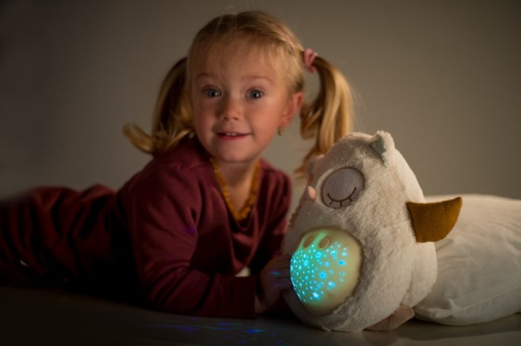 Plyšový usínáček v podobě sovičky pomáhá dětem snadněji usnout za pomocí příjemných melodií a tlumeného světla. Po zmáčknutí tlačítek na bříšku se z pokojíčku stane rázem říše snů. Sovička promítá noční oblohu v 8 barvách, hraje 8 ukolébavek a také zvuky, na které jsou děti zvyklé od maminky z bříška. Po odehrání ukolébavky promítá noční oblohu cca 1 minutu, poté se vypne.Velikost sovičky: 25 cm