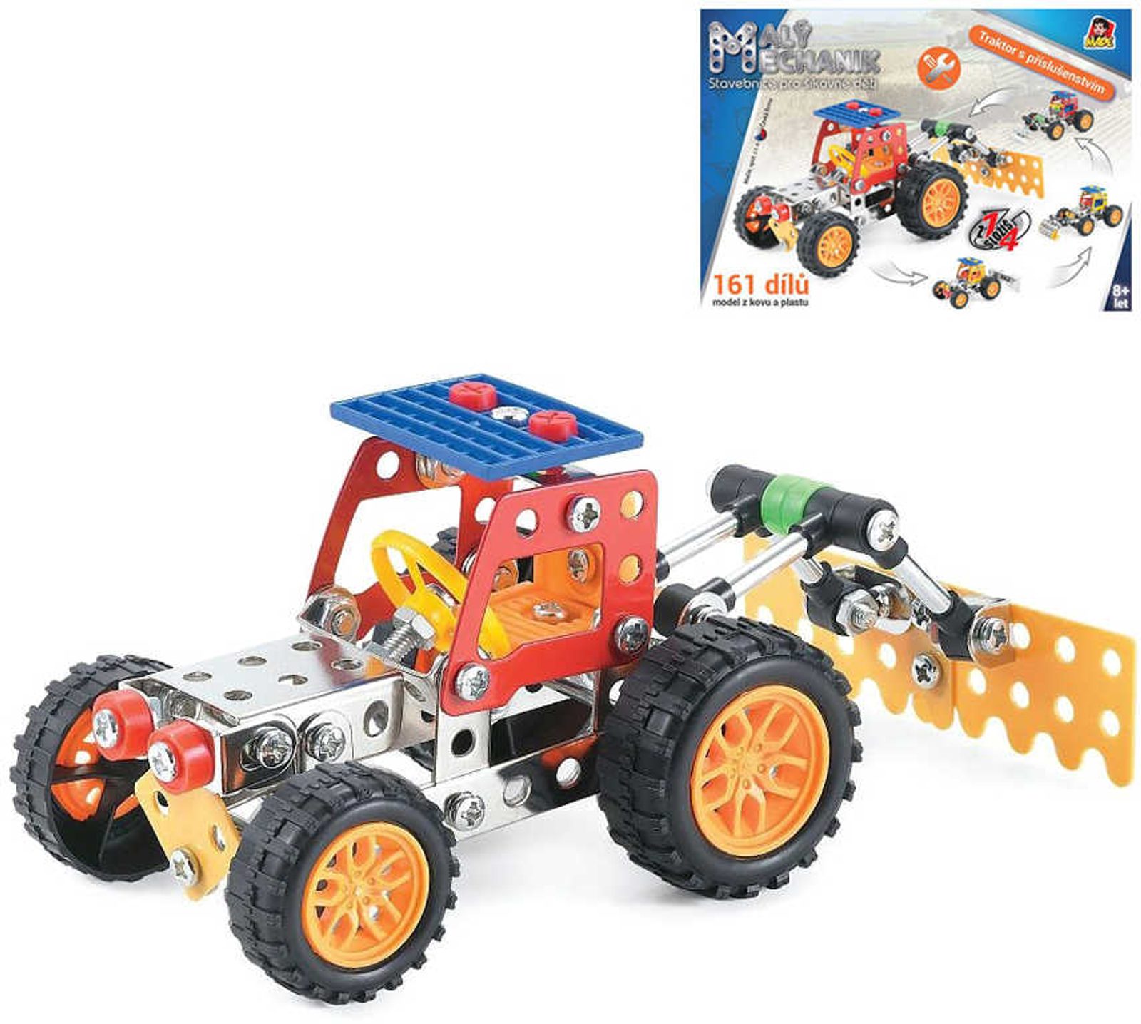 📌 Malý mechanik Traktor 161 dílů 4v1 Stavebnice typu Merkur kov plast v krabici