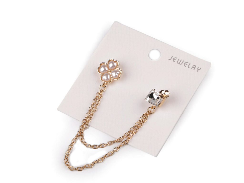 Brož / spona dragoun je elegantním doplňkem, který zaujme na první pohled svým jemným a propracovaným designem. Je ozdobená broušeným kamenem a čtyřlístkem, na které najdete lesklé perly. Oživí každý outfit. Čtyřlístek je symbolem štěstí, brož může být i malým talismanem pro svého nositele. Může si ji připnout na sako, kabát, košili, halenku i tašku. Oba díly brože mají jednobodové zapínání jako odznaky.- Materiál: bižuterní kov s galvanizací, sklo, plast