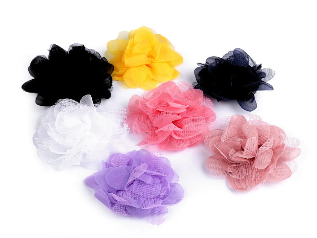 Použití: Květ můžete našít jako ozdobu na společenské šaty, halenky, trička nebo svetry. Je vhodný i na zdobení klobouků, čepic a čelenek do vlasů. Můžete ho také pomocí lepidla přilepit na brožový můstek a vytvořit zajímavý šperk.