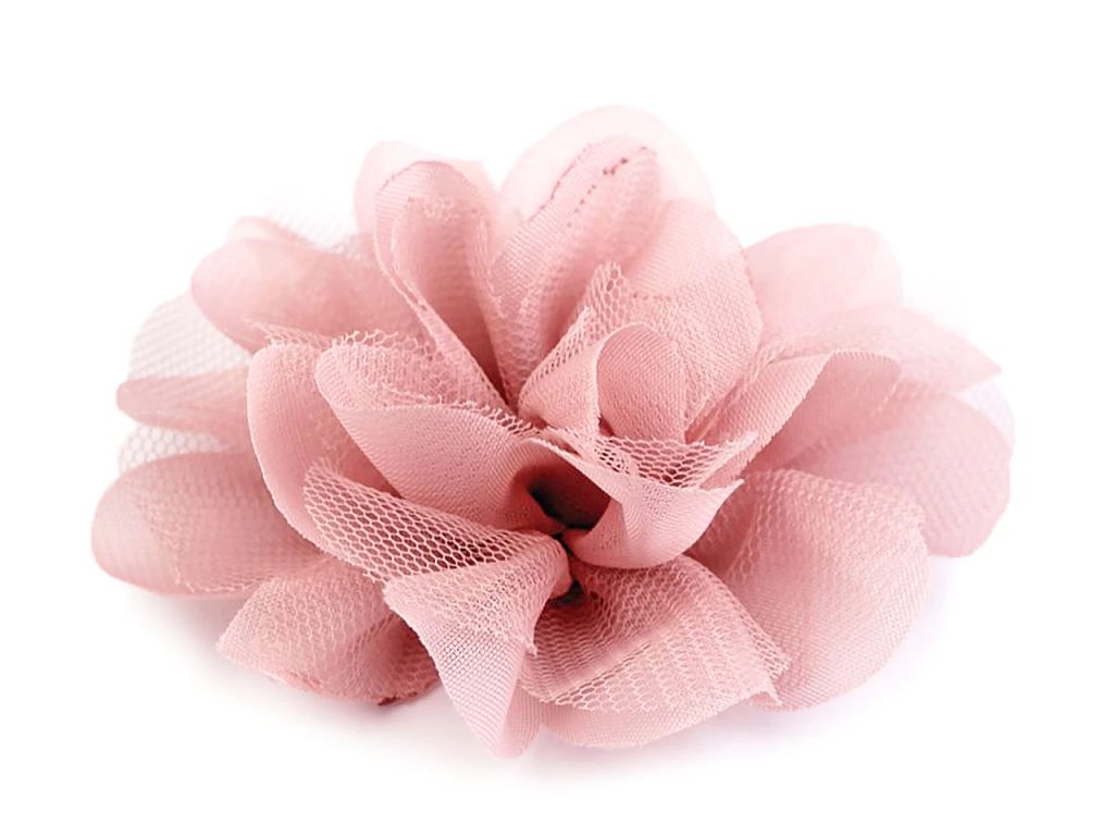 Romantický textilní květ má široké možnosti využití. Díky bohatým okvětním plátkům má nadýchaný vzhled.