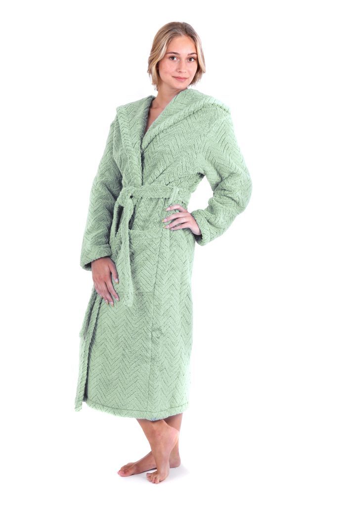 Župan Athena pro muže i ženy v olivové barvě. Luxusní a komfortní župan, v kterém se budete cítit doslova jako v bavlnce.