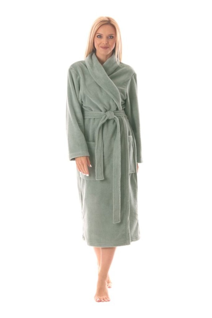 Unisex župan českého výrobce značky Vestis v olivové barvě pod názvem Tampa. Župan v barvě olivové unisex střihu - ideální pro muže i ženy. Dlouhý župan klasického střihu se šálovým límcem, velkými kapsami a se zavazováním v pase.