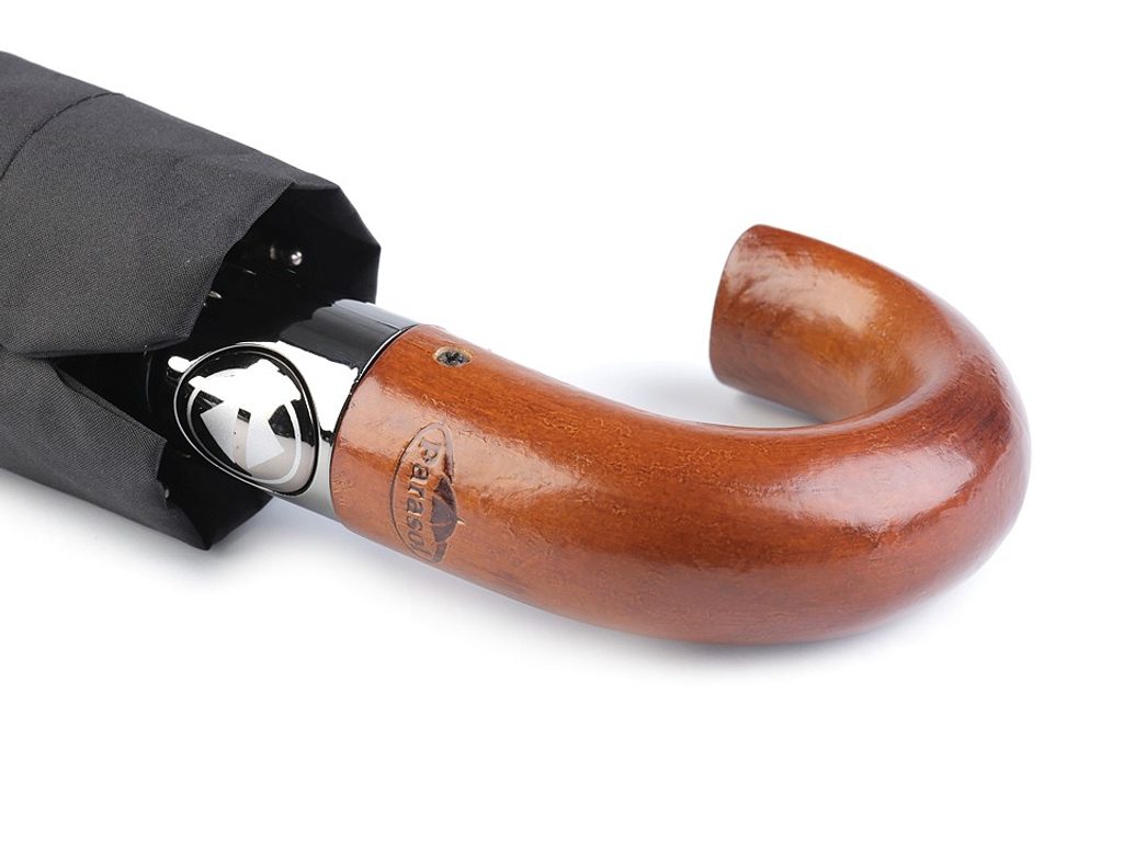 Deštník má dřevěnou rukojeť. Součástí deštníku je ochranný obal.