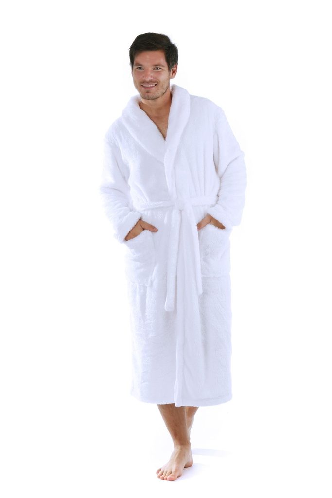 Župan pro muže i ženy v bílé barvě od českého výrobce Vestis. Župan se šálovým límcem, kapsami a zavazováním v pase. Měkký a huňatý župan "tzv. medvídek" je ideální pro každého muže.