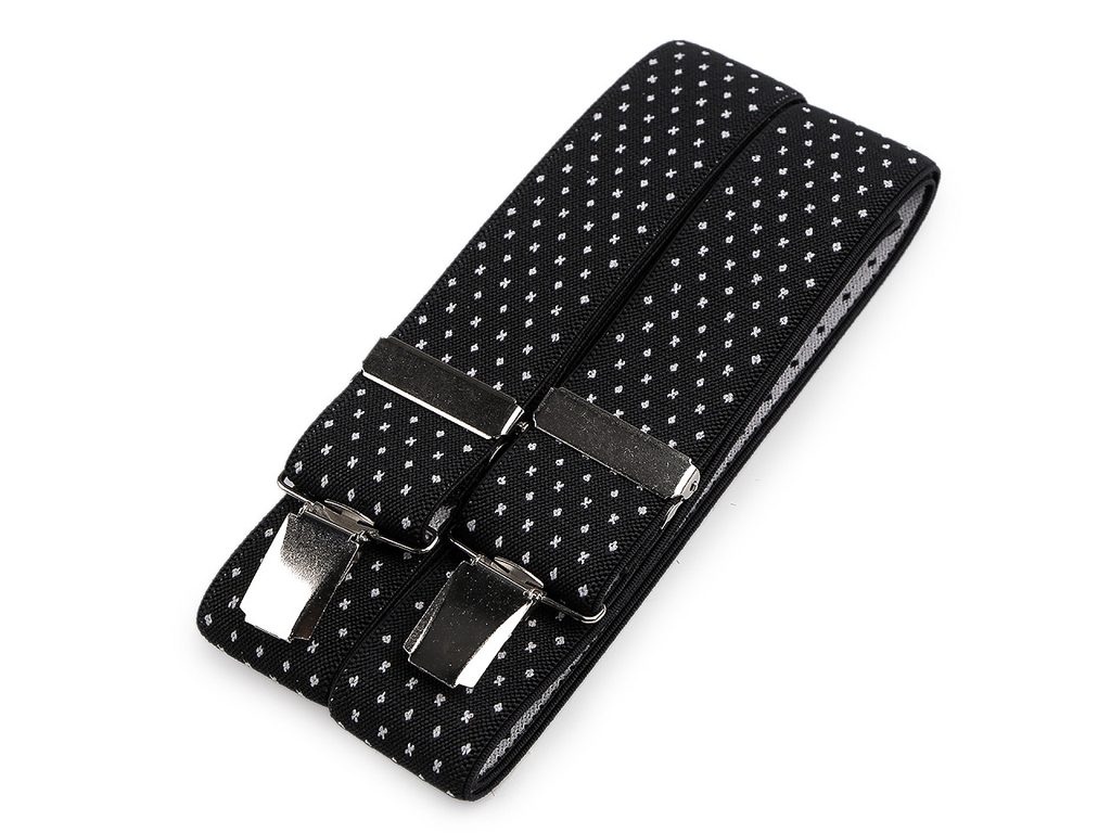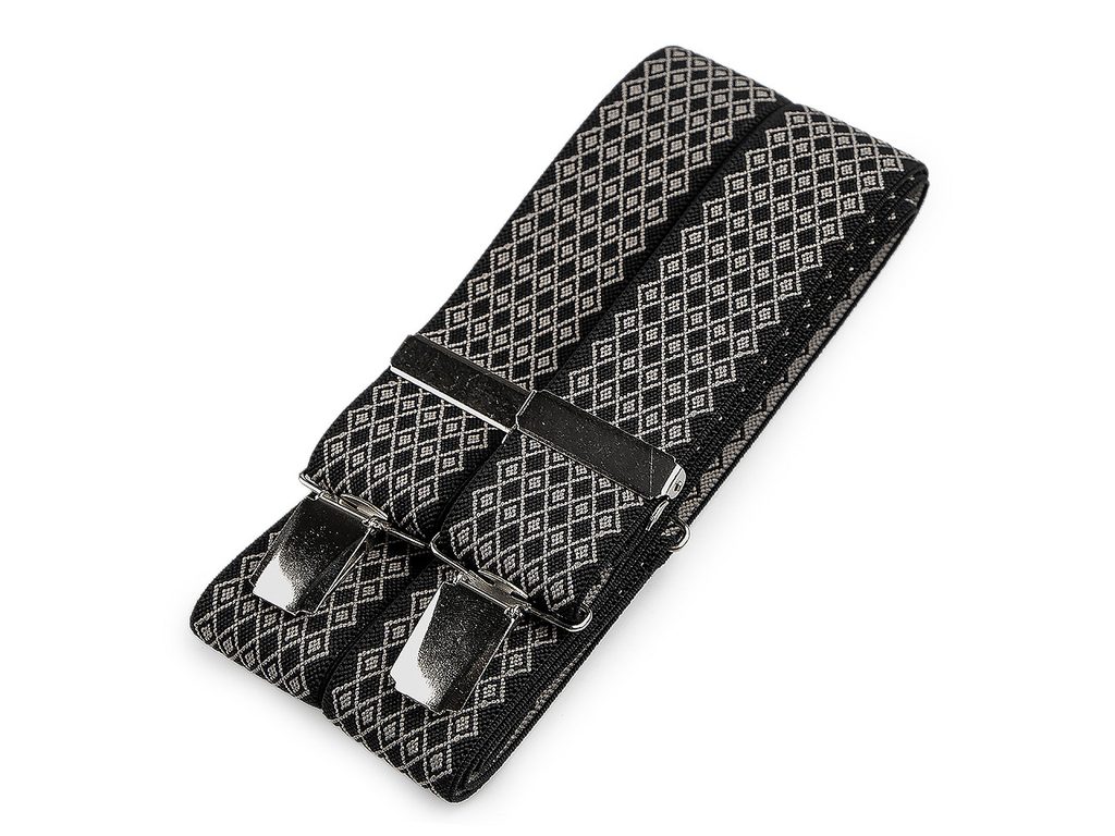 Pánské šle české výroby s drobnými kosočtverci. Šle jsou kvalitní, udrží vám kalhoty na správném místě. Pokud nejste milovníci pásků, „kšandy“ jsou pro vás ideálním doplňkem. Elastický materiál umožňuje pohodlné nošení.Zadní vsadka z eko kůže jim dodává stylový vzhled. Ke kalhotám se upevňují na tři kovové žabky - dvě vpředu a jednu vzadu.