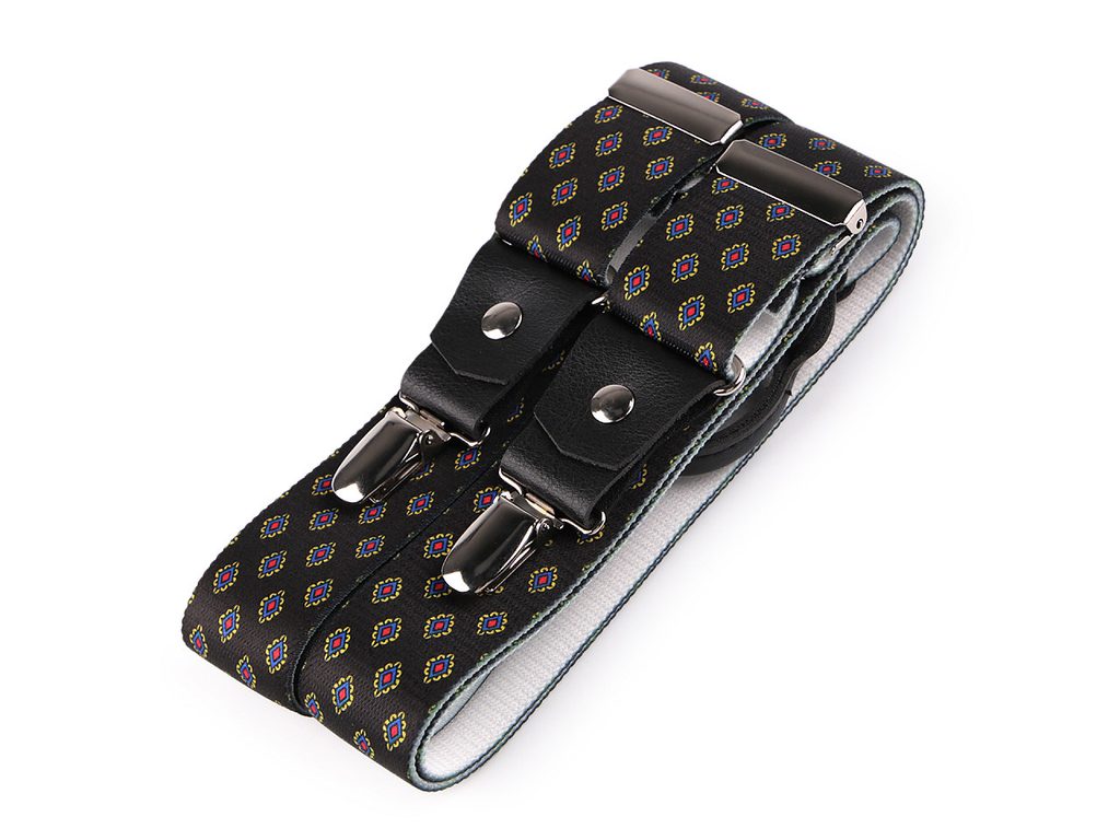 Jsou kvalitní české výroby, elastický materiál umožňuje pohodlné nošení. Zadní vsadka z eko kůže jim dodává stylový vzhled. Ke kalhotám se upevňují na tři žabky - dvě vpředu a jednu vzadu.