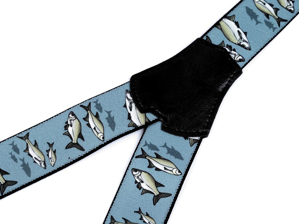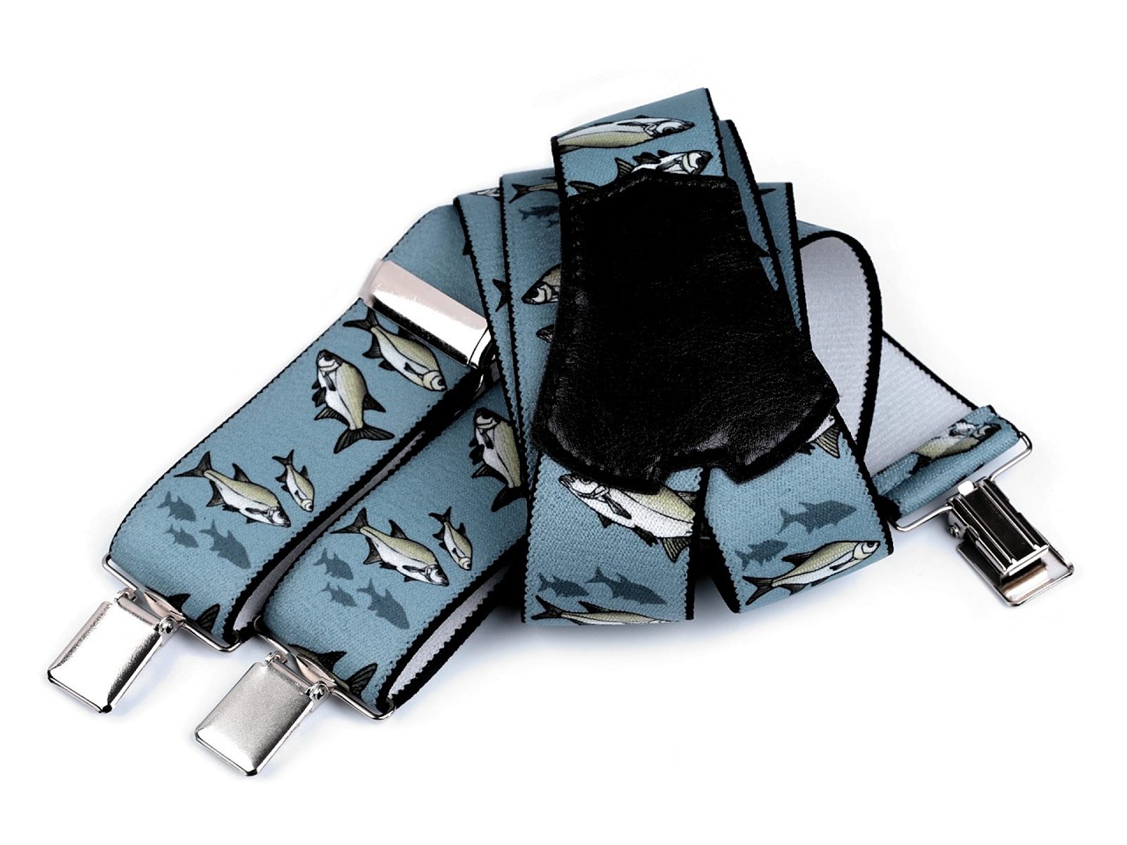 Kšandy s rybím potiskem potěší všechny rybáře. Kšandy bývají nedílnou a zároveň praktickou součástí jejich oblečení.
