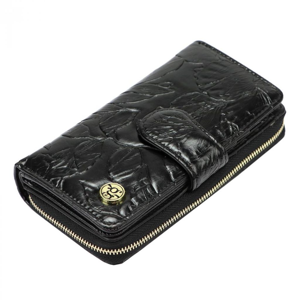 Černá lakovaná malá dámská kožená peněženka v dárkové krabičce ZLF-117