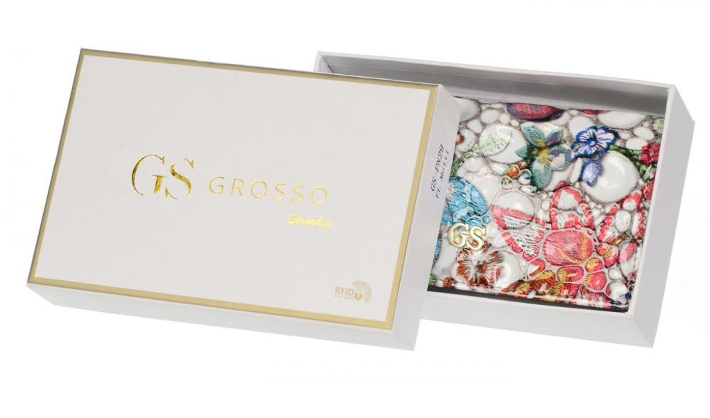 Kožená dámská peněženka v barevném motivu RFID šedá v dárkové krabičce PN29
