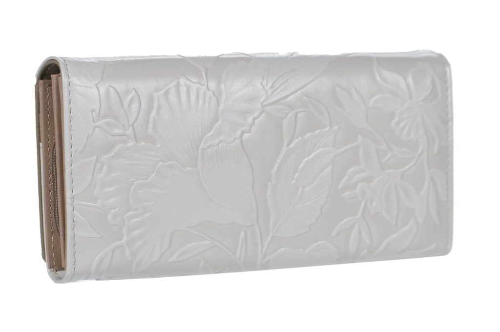 GROSSO Kožená matná dámská peněženka RFID béžová s listy v dárkové krabičce