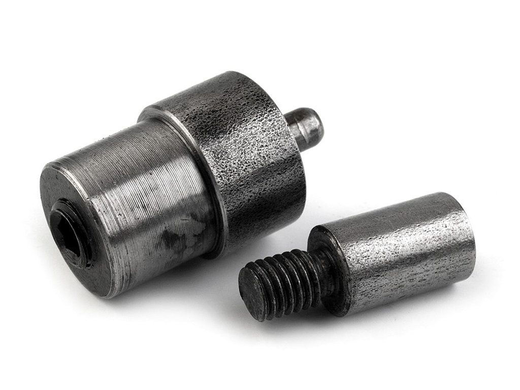 Kovový piston, který se skládá ze dvou částí, je určený k nýtování průchodek. Používá se tak, že větší část pistonu umístíme v dolní části lisu a vložíme látku s průchodkou o průměru 6 mm, kterou najdete pod kódem 060915. Druhou část zašroubujeme do horní části lisu. Průměr závitu je 7,7 mm. Průměr spodní části, která se vkládá do lisu je 18,8 mm.