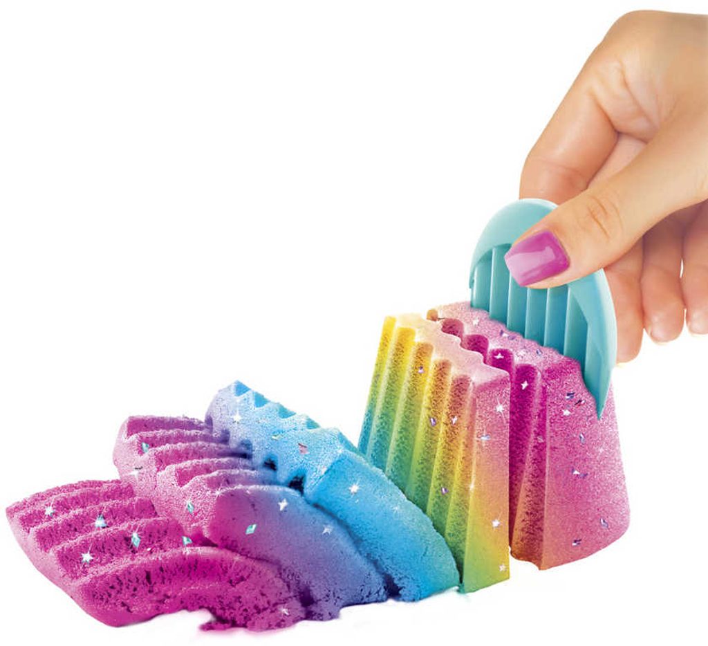 Vyrobte si kouzelný písek. Začněte tak, že do něj přidáte kouzelný gel a důkladně jej promícháte s pískem. Krájejte ho, tvarujte ho, vytvářejte na jeho povrchu různé vzory. Lze také přidat glitry nebo barevné písky