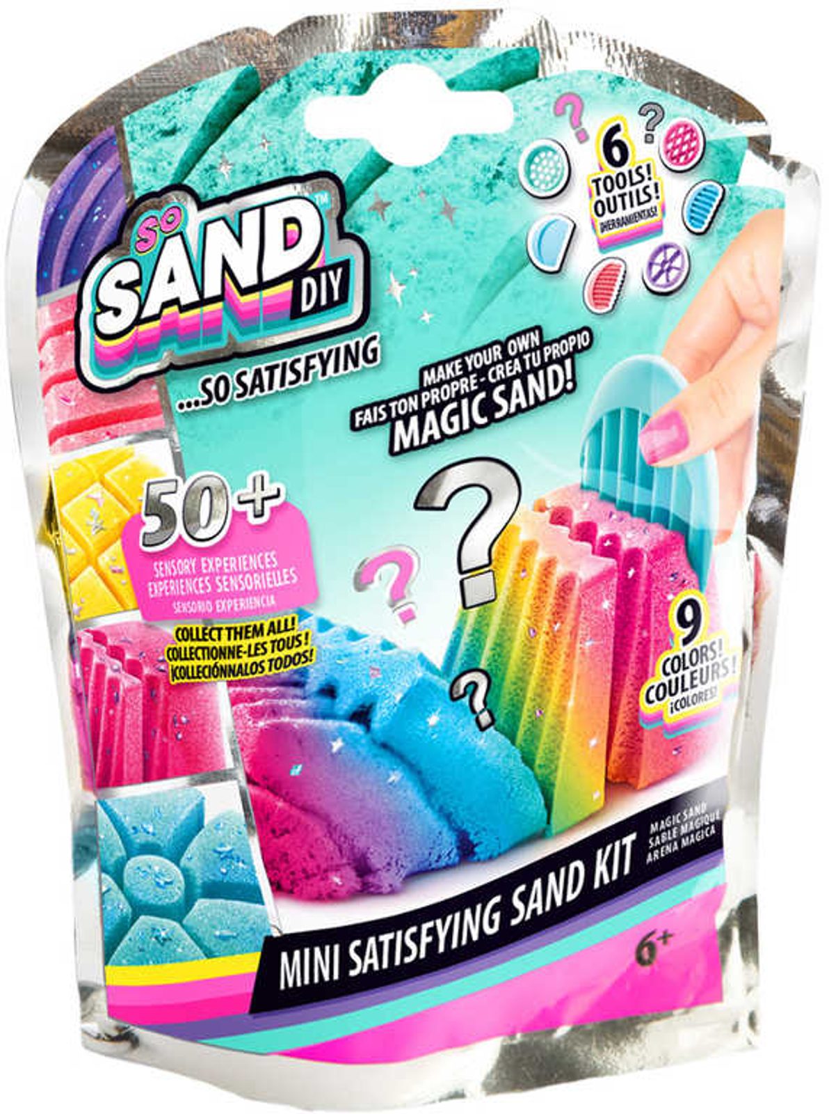 So Sand kouzelný písek - kreativní set v sáčku, v několika barevných variantách písku a v několika variantách provedení nástroje.