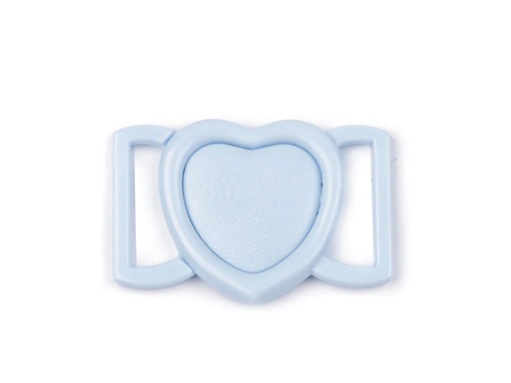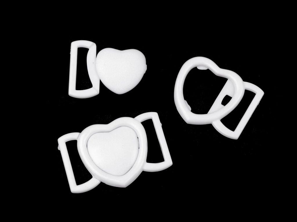 Plastové zapínání ve tvaru srdce využijete na plavky nebo lehké textilní opasky v retro stylu. Zapíná se vsunutím jednoho dílu mezi druhý díl a zacvaknutím.
