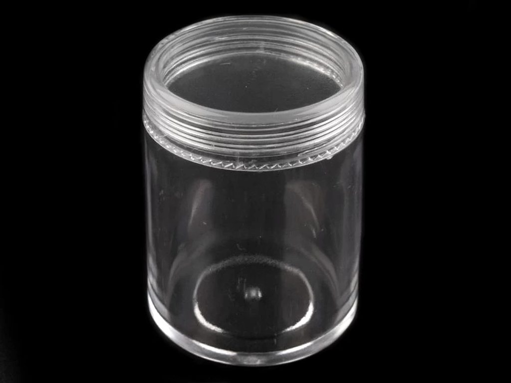 Plastová dóza je vyrobená z průhledného materiálu. Má šroubovací víko, vložené předměty se nerozsypou. Je vhodná pro praktické uložení rokajlu nebo větších korálků, na flitry či další drobnosti potřebné nejen pro výrobu bižuterie.