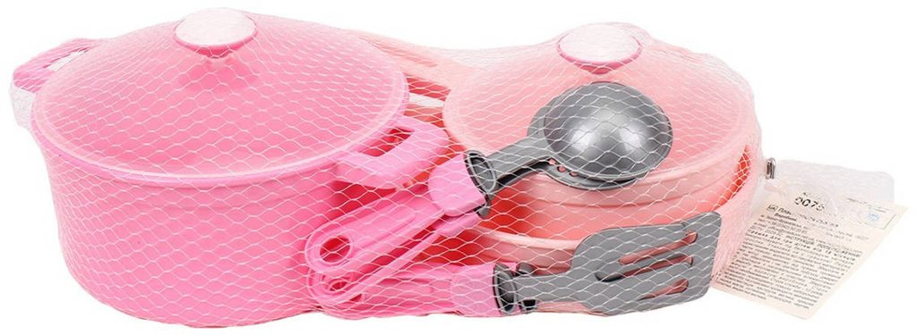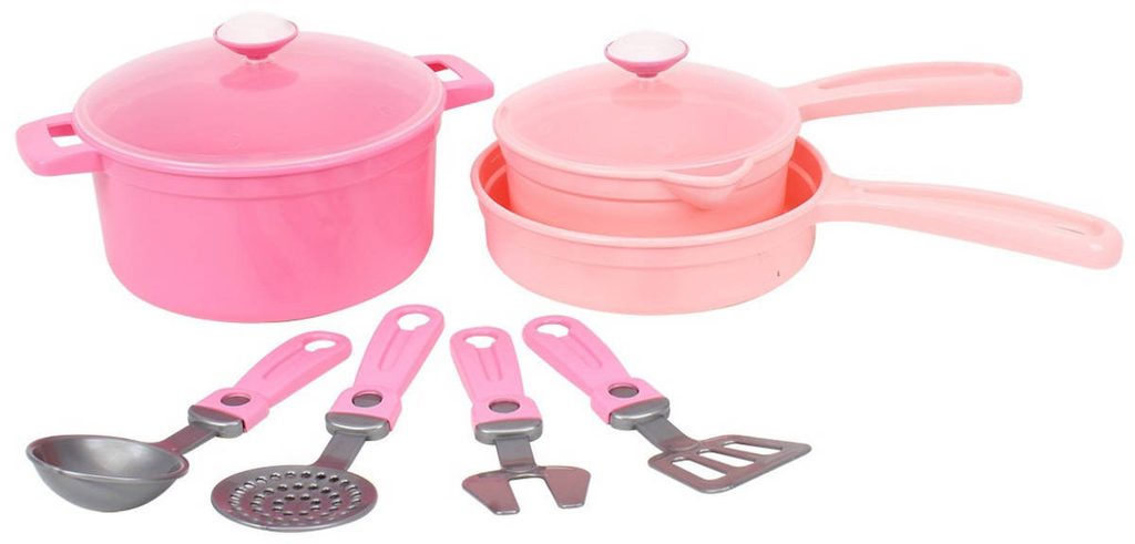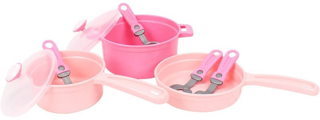 Nádobí baby dětské růžové set 2 hrnce s pánví a doplňky plast