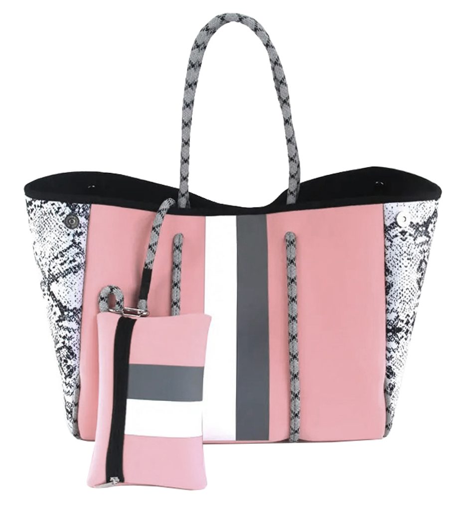 Neoprenová dámská plážová taška voděodolná bílo-růžová JG052