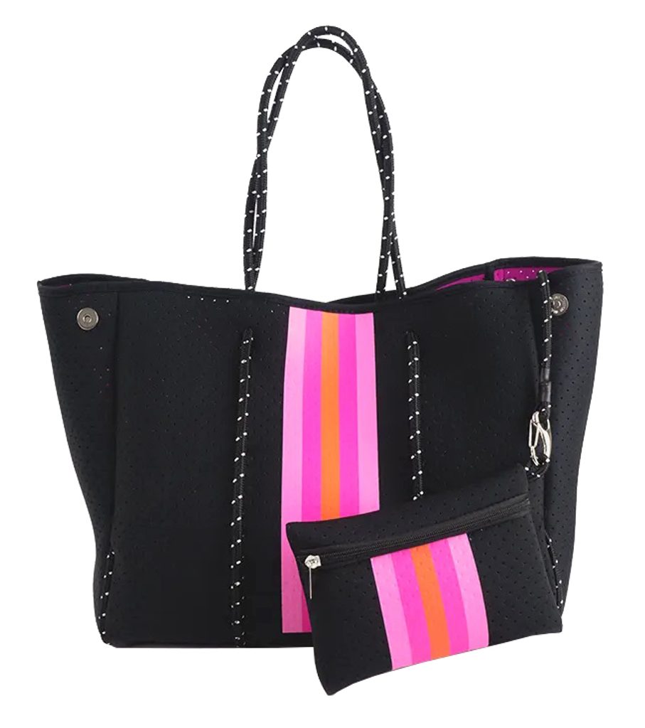 Neoprenová dámská plážová taška voděodolná černo-růžová JG067