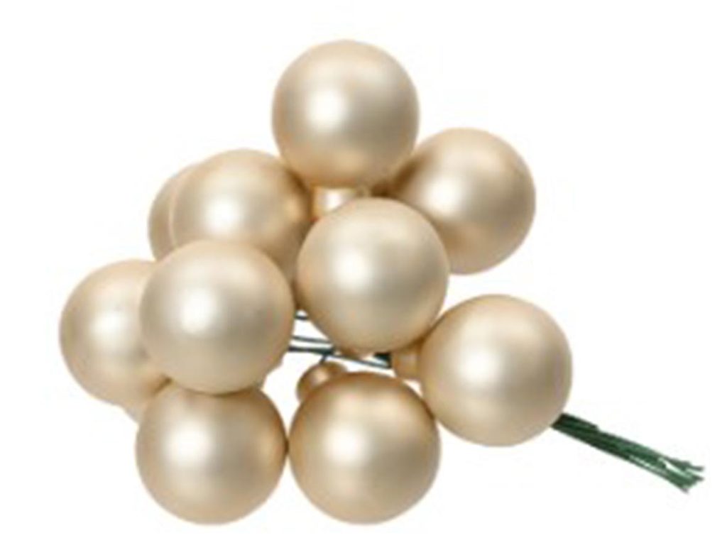 Dekorace s bobulemi. Průměr : průměr 2,5 cm. Barva : krémová. Materiál : sklo.Rozměr: dia 2.5 cm