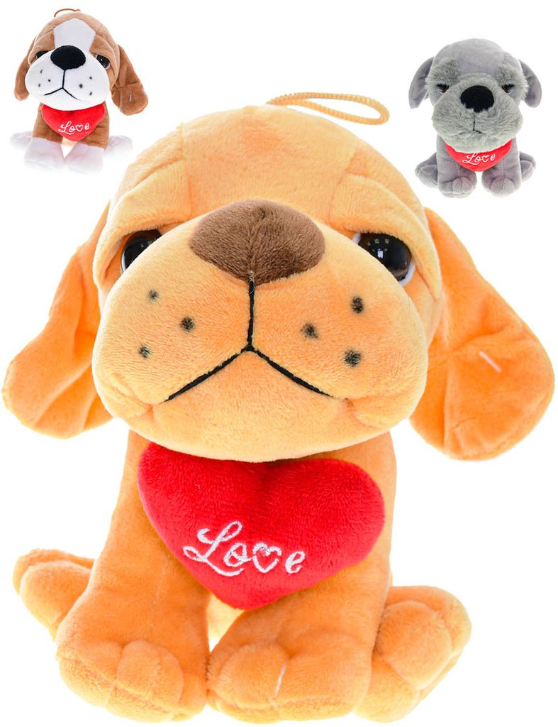 PLYŠ Pes sedící se srdíčkem Love 15cm 3 druhy