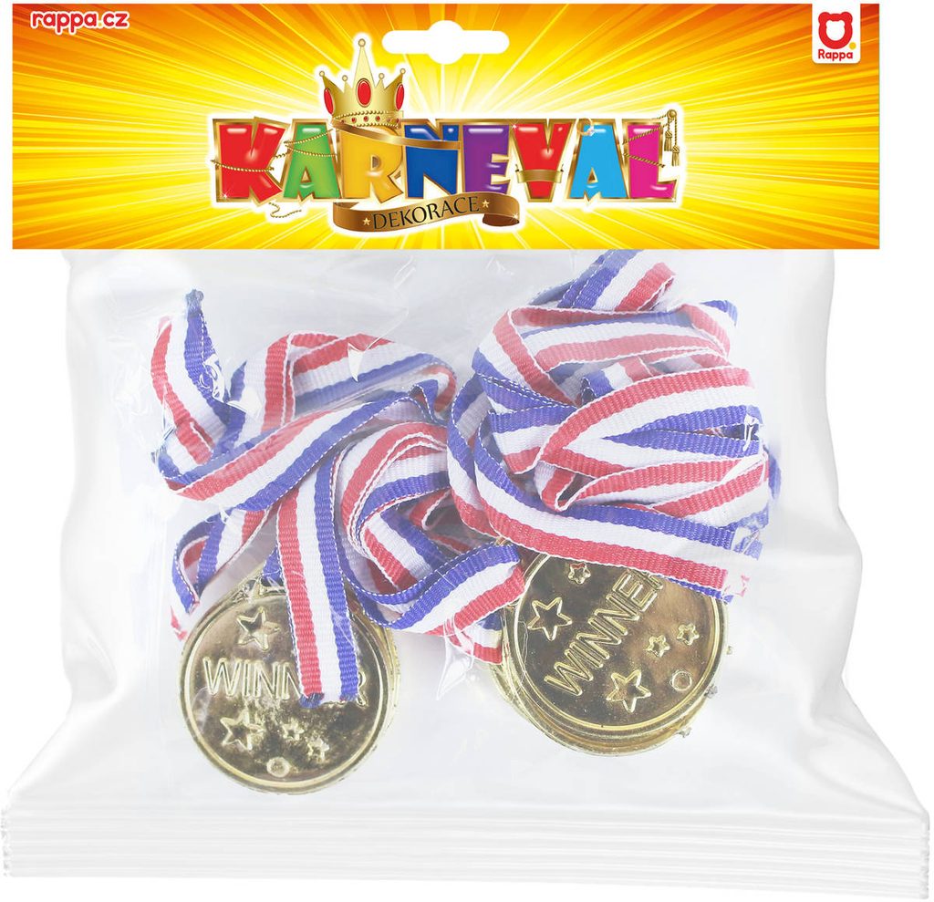 Medaile dětská zlatá trikolora set 6ks v sáčku plast