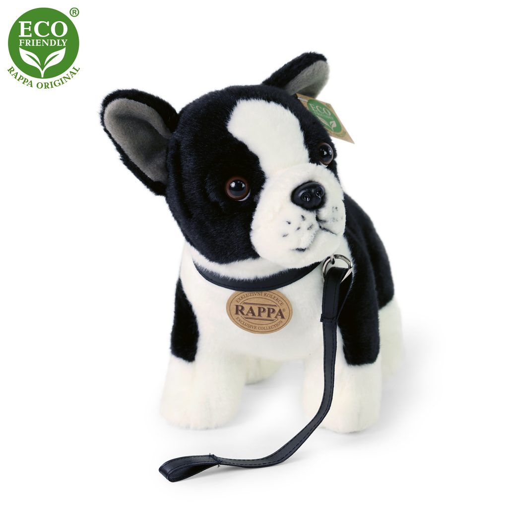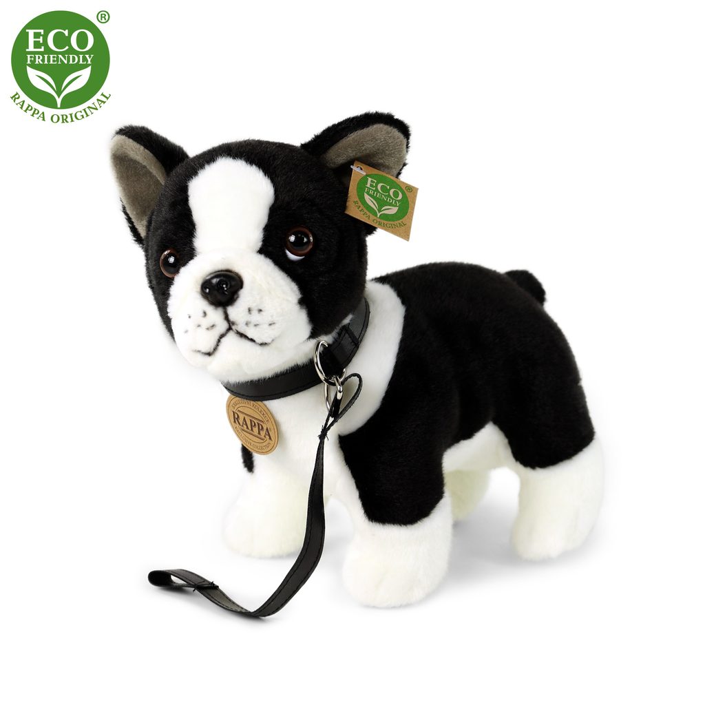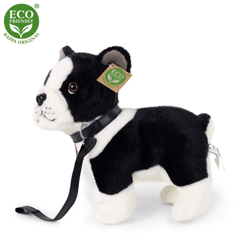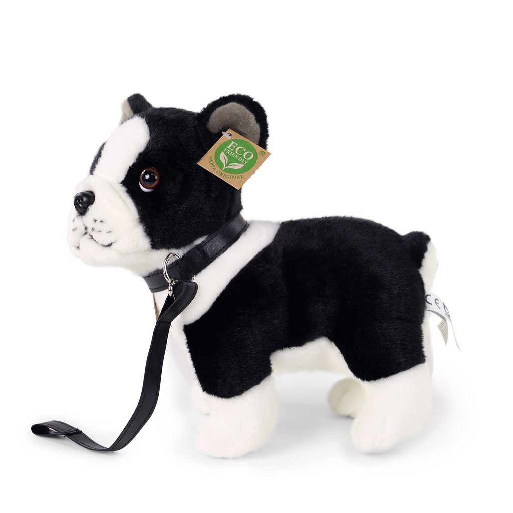 📌 Plyšový pes francouzský buldoček s obojkem stojící, 23 cm