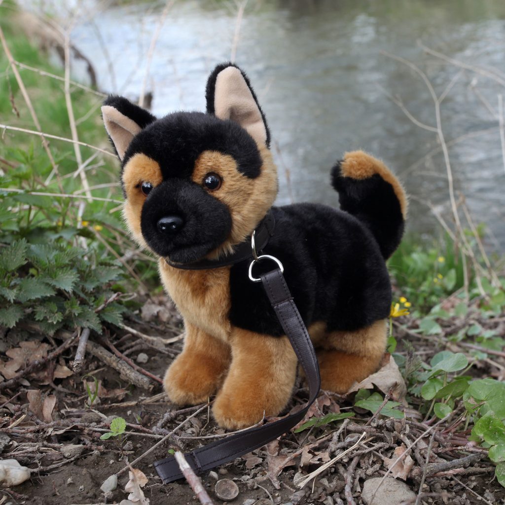 📌 Plyšový pes německý ovčák s obojkem stojící 23 cm