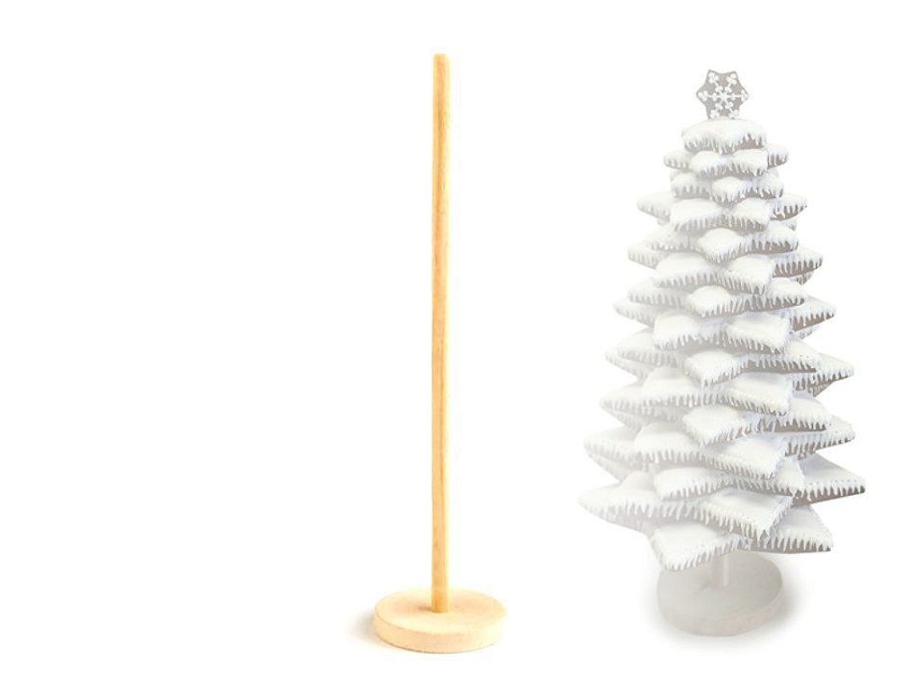 Dřevěný stojan skvěle využijete např. při výrobě dekorační panenky nebo jiné postavičky. Už nemusíte přemýšlet, jak to zařídit, aby panenka stála!Na horní konec můžete přilepit dřevěnou hlavičku nebo napíchnout polystyrenovou kuličku. Zbytek těla můžete uplstit, ušít, záleží na vaší kreativitě a fantazii. Podstavec můžete využít i jako kmen při výrobě stromečku z polystyrenového kuželu nebo koule. Určitě nadchne příznivce nešitého patchworku.