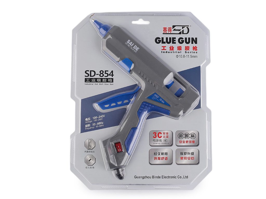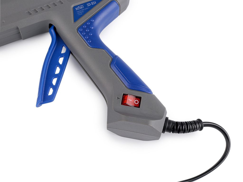 Tavná lepicí pistole pomůže s lepením při různých hobby technikách. Můžete do ní použít lepidlo Ø11 mm. Na konci rukojeti má dvoupolohový přepínač, kterým se pistole zapne a vypne. Pistole se zapojuje do elektřiny. Při práci s ní zacházejte opatrně, protože její tryska je horká. Rozehřátou pistoli odkládejte na stojánek umístěný v její přední části. Lepte pouze s dobře rozehřátou pistolí, pokud není lepidlo tekuté, může při tlačení na píst dojít k jejímu poškození.Průměr trysky je 3,2 mm.