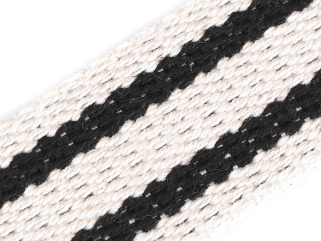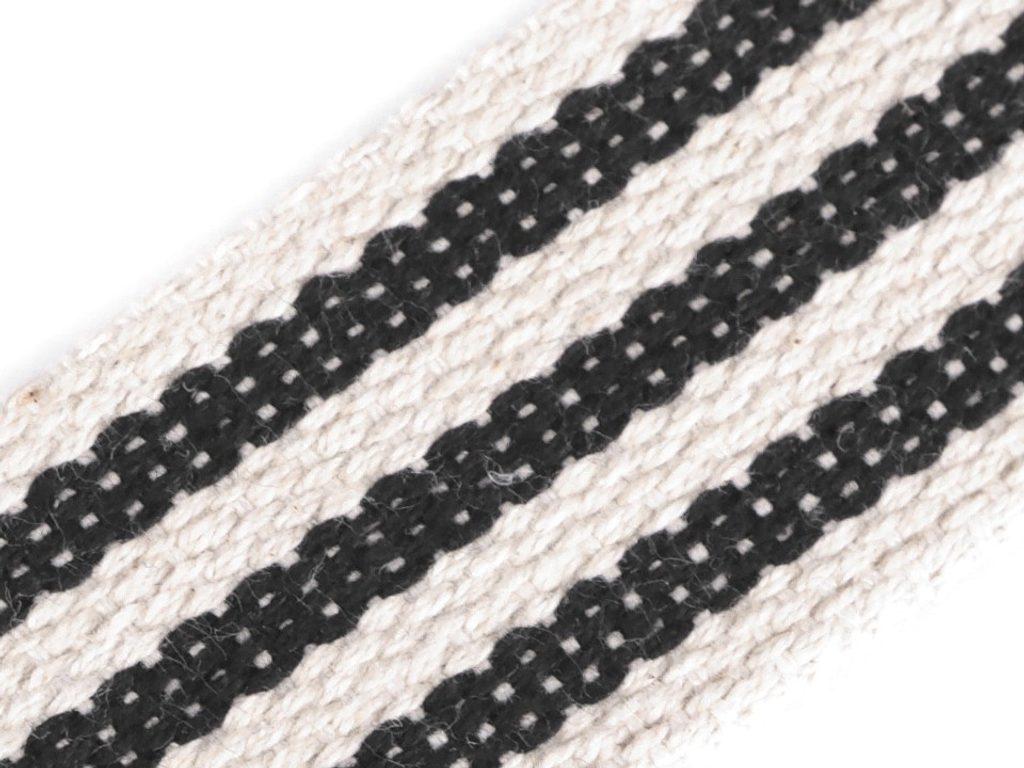 Pevný popruh je vhodný jako ucho na batohy či tašky. Můžete ho použít také na výplety nábytku, lehátek, saní, lemování textilních výrobků atd. Hodí se i na výrobu opasků.