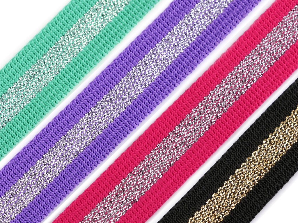 Hladký oboustranný popruh s lurexem šíře 40 mm METRÁŽ