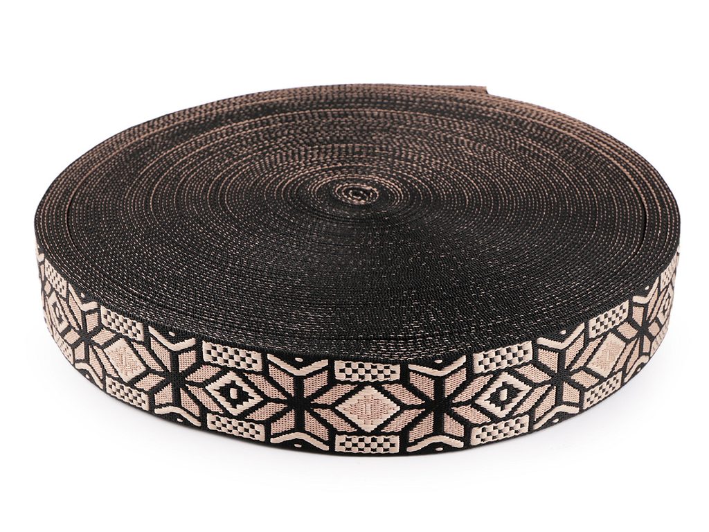 Stylový textilní popruh se skvěle hodí na výplety nábytku, lehátek, saní, lemování textilních výrobků, jako ucho na batohy, tašky, kabelky, kytary apod.