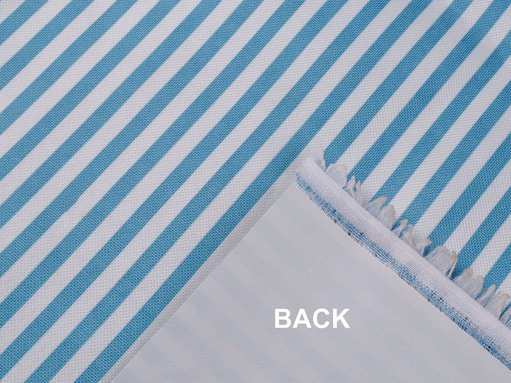 Pruhovaná kočárkovina je z rubové strany opatřená nánosem z PVC s vodoodpudivou úpravou, díky tomu je nepromokavá. Je pevná, oděruvzdorná a hrubší. Využijete ji na šití tašek, batohů, potahů, kočárků, pelíšků pro zvířátka, sedacích vaků, lehátek, slunečníků apod.Tmavší odstíny látky mohou vlivem UV záření změnit barvu.