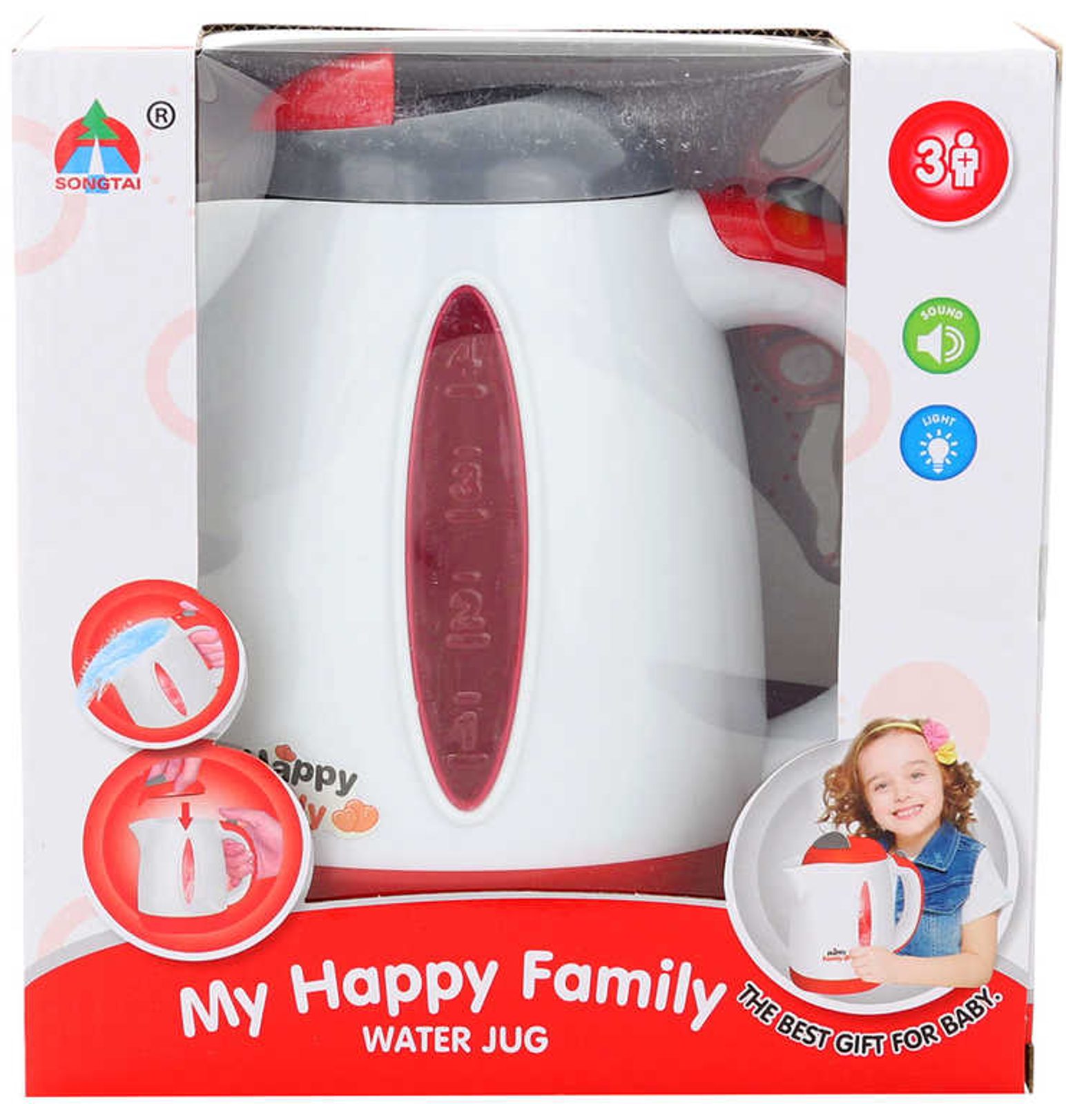 Plastová rychlovarná konvice pro děti, pro všechny malé hospodyňky a pomocnice v domácnosti. Konvice svítí a vydává zvuky, je možné ji naplnit vodou. Hračka se světlem a zvukem, na baterie. Baleno v